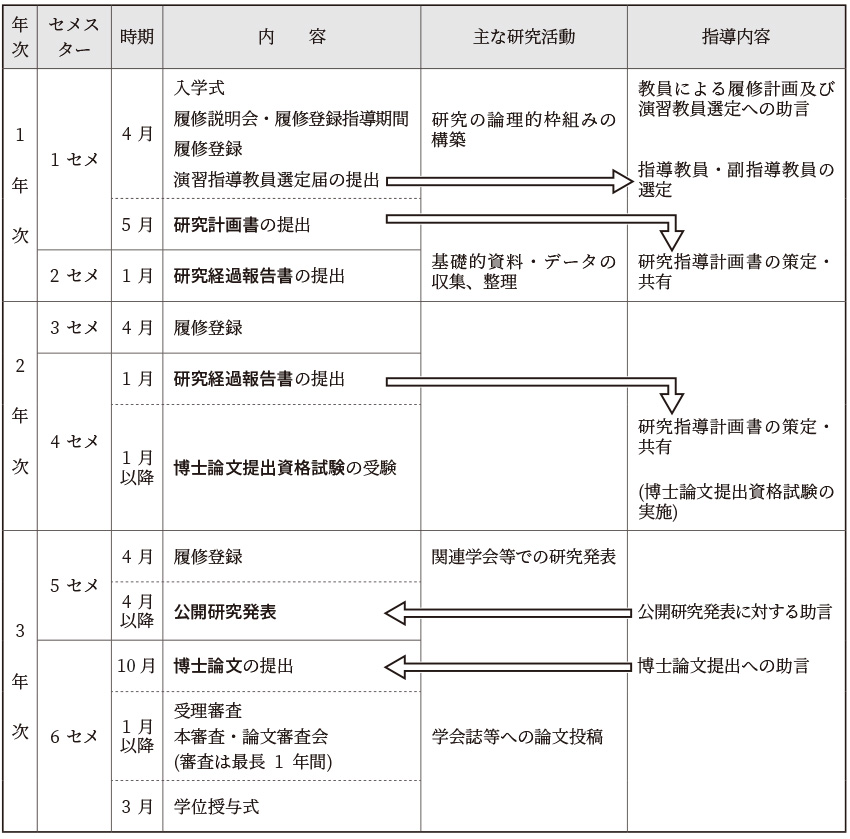 博士後期課程学位授与までのプロセス(研究指導・審査スケジュール)